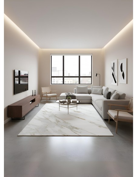 Alfombra importada de Turquía, cuenta con 576.000 puntos por metro cuadrado. Dada su composición de fibras sintéticas brillosas y soft poliéster se caracteriza por ser suave, elegante y única en su estilo. Es antialégica, antiacaros y pet friendly. Cumple con las normas internacionales OEKO-TEX STANDAR 100, ISO 145459 OETI y el reglamento técnico ecuatoriano RTE INEN 127 (1R).