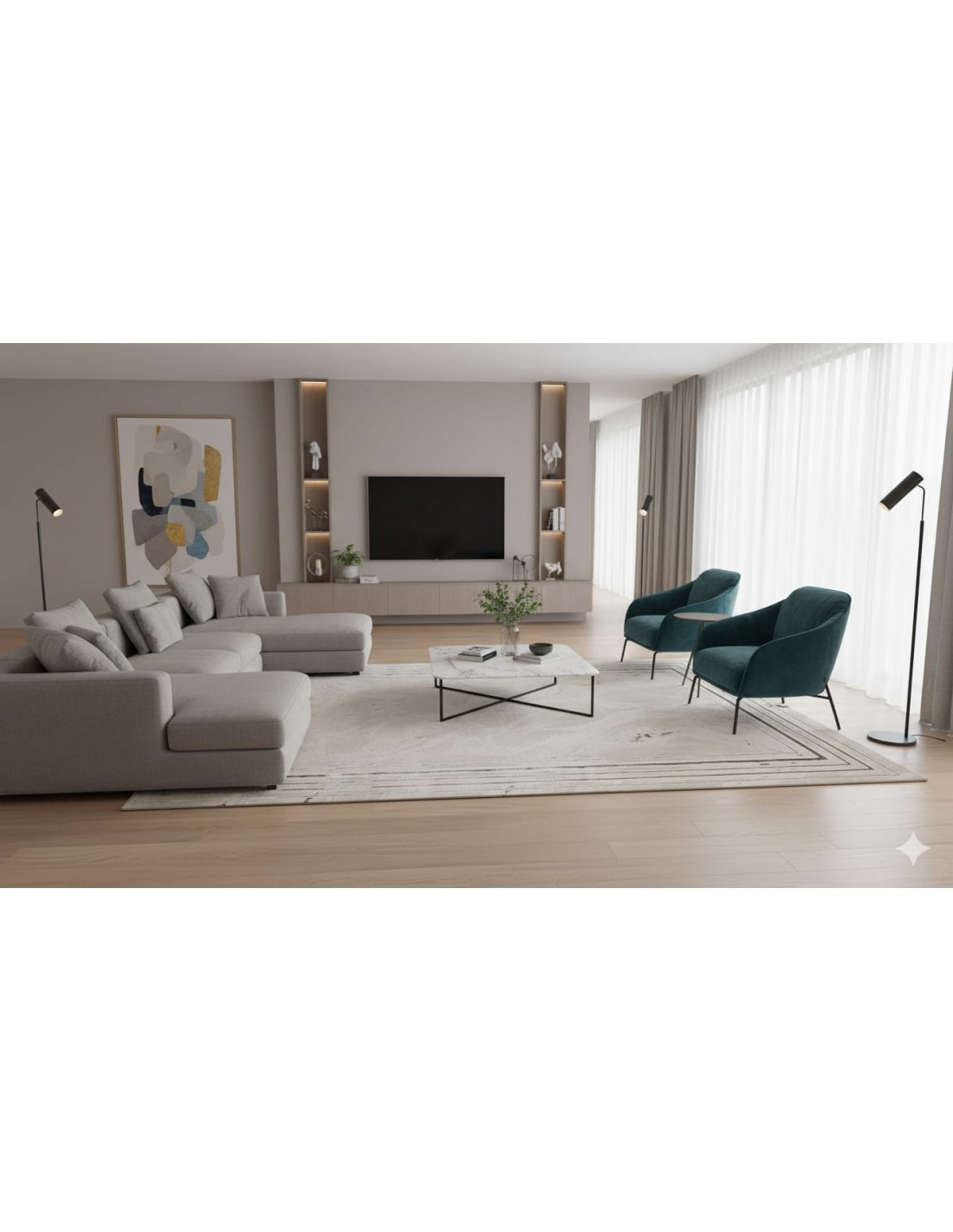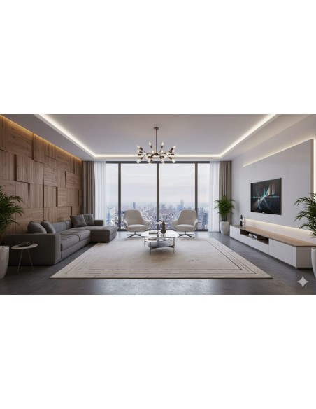 Alfombra importada de Turquía, cuenta con 576.000 puntos por metro cuadrado. Dada su composición de fibras sintéticas brillosas y soft poliéster se caracteriza por ser suave, elegante y única en su estilo. Es antialégica, antiacaros y pet friendly. Cumple con las normas internacionales OEKO-TEX STANDAR 100, ISO 145459 OETI y el reglamento técnico ecuatoriano RTE INEN 127 (1R).